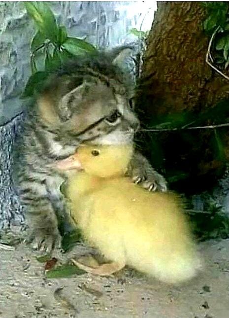About three months after settling in Prescott, I stumbled across an image on the internet, one depicting a kitten embracing a tiny duckling. It’s not by accident that the first person I shared this with was my new friend, Bob.